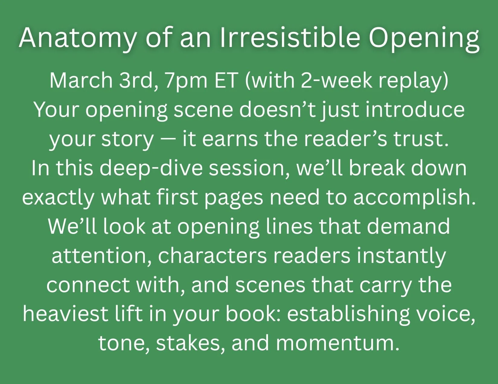 Before I got my first publishing contract, I would’ve JUMPED at an opportunity like this. I hope you’ll consider taking the leap and joining me on December 3rd!!!