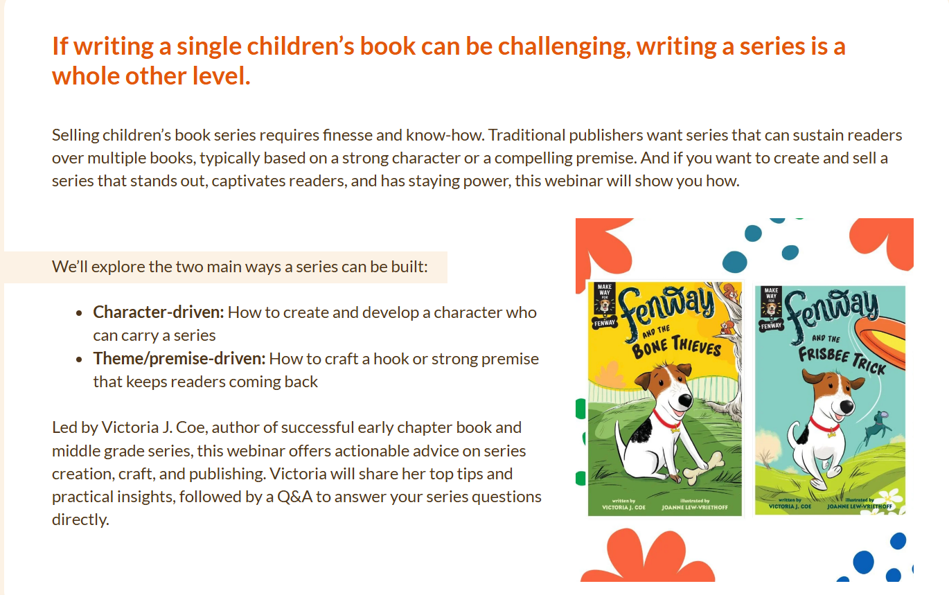If you’ve ever wondered how authors create a series that keeps young readers coming back - GREAT NEWS! I’m teaching a webinar all about it!